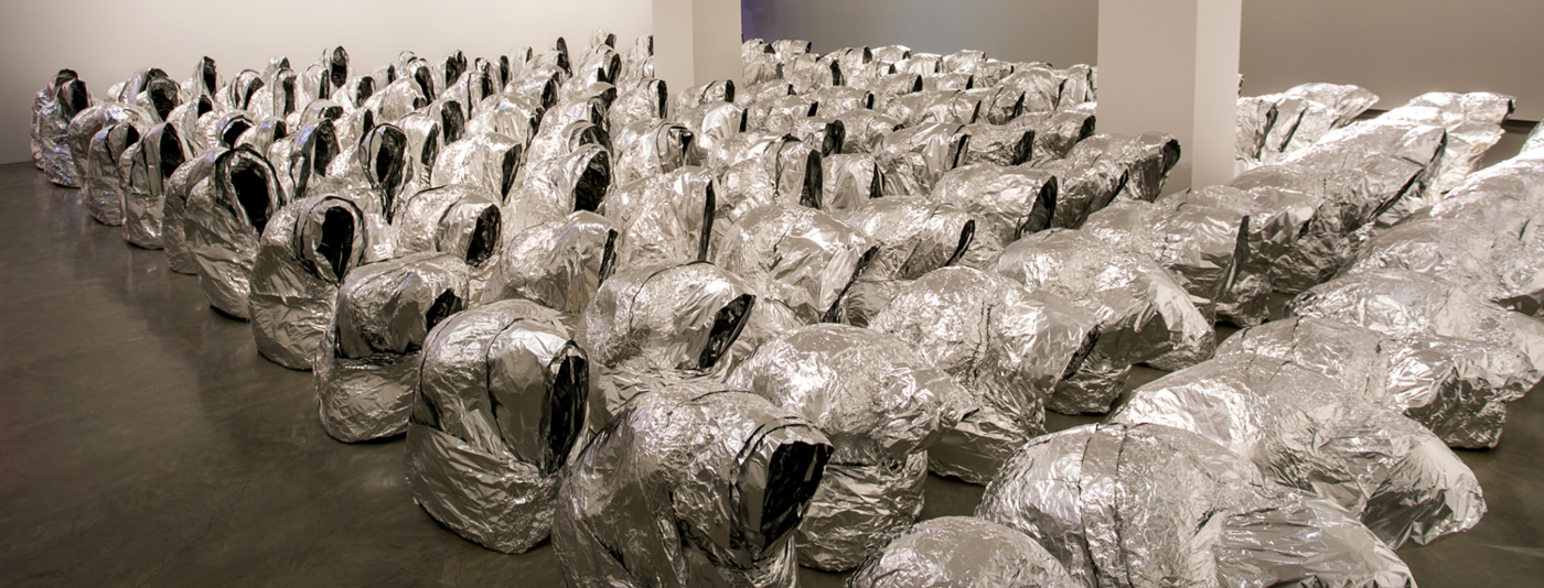 Kader Attia. Ghost 2007 / 2017. Installation view, Kader Attia, Museum of Contemporary Art Australia, Sydney, 2017. Aluminium foil. Courtesy the artist and Galerie Nagel Draxler, Berlin/Cologne. Image courtesy the artist and Museum of Contemporary Art Australia © the artist. Photograph: Anna Kučera